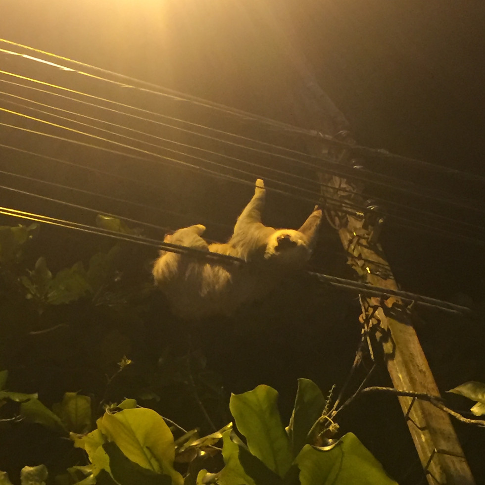 Sloths- these you'll see in the evenings on power lines, just look for a group of tourists all looking up (as pictured below) The people here will definitely alert you to any sloth in the vicinity, so you won't miss them!