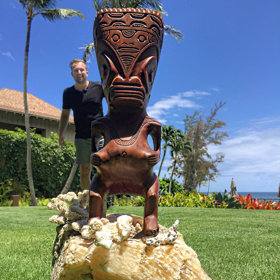 This tiki has a story. Or rather, it might have a story. We actually have two tikis, but my family can't remember where each of them came from. One is from Hawaii and the other is from Nuku Hiva, French Polynesia. The catch? We don't know for sure which is which. According to the story I'm told, the tiki from Nuku Hiva is named Dudley. My grandmother had seen Dudley(a fellow passenger on her ship) shopping and eyeing the statue, stating he would come back and buy it, but he never made it- Dudley died that day on Nuku Hiva. With fond memories of her new friend, my grandmother purchased the tiki he was eyeing and called it Dudley. Years later, she acquired another tiki from a museum shop on Kauai, and as the decades went by she lost track of which was which.